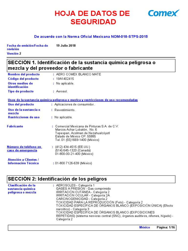 Aero Comex® Blanco Mate - Revolucion Dayma Pinturas S.A. de C.V.